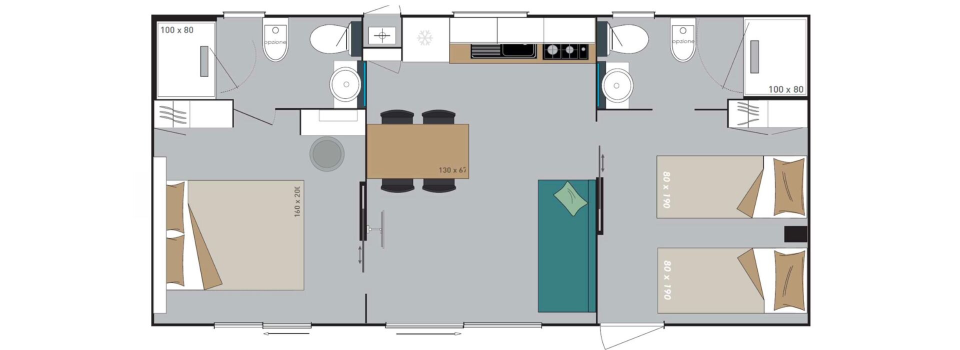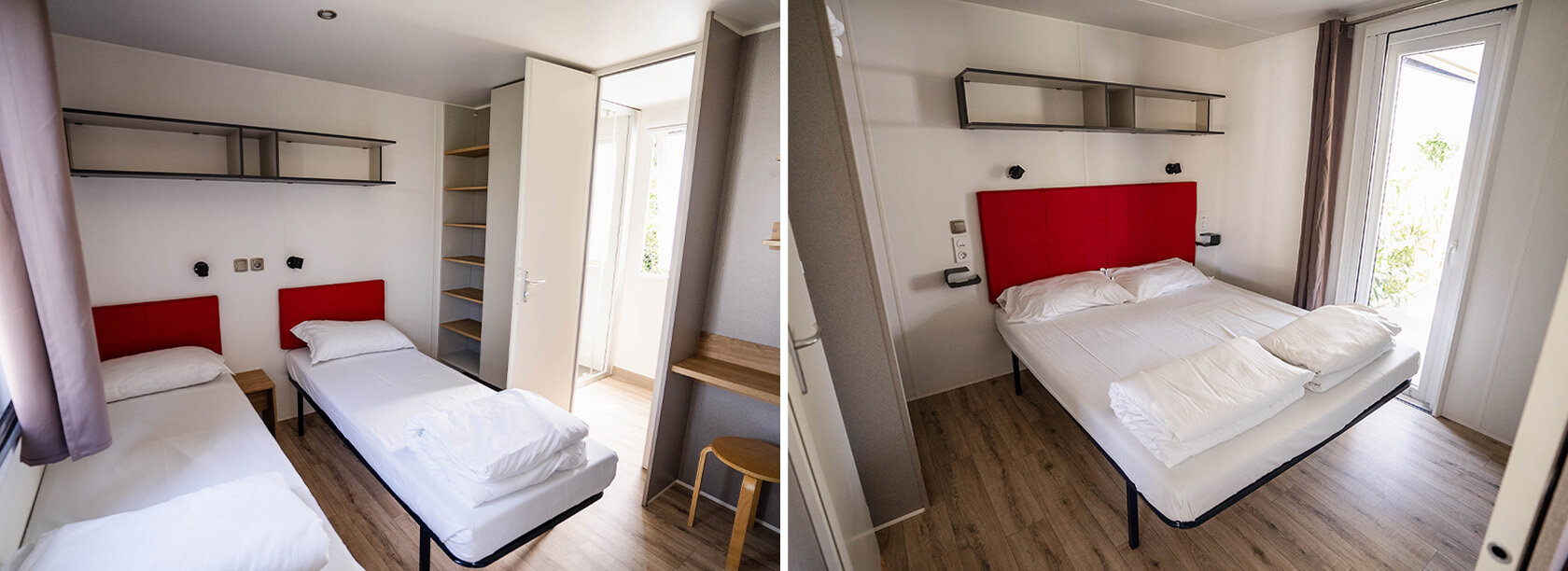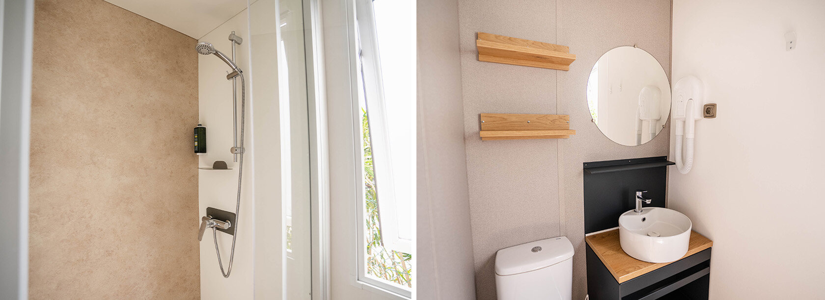 Helt nye mobilehomes udstyret med alle bekvemmeligheder og omgivet af naturen. Terrassen er udstyret med bord og stole med udsigt over en stor have med to komfortable liggestole og en grill. Ferieboligen tilbyder al den komfort der skal til for at få en ferie med total afslapning.