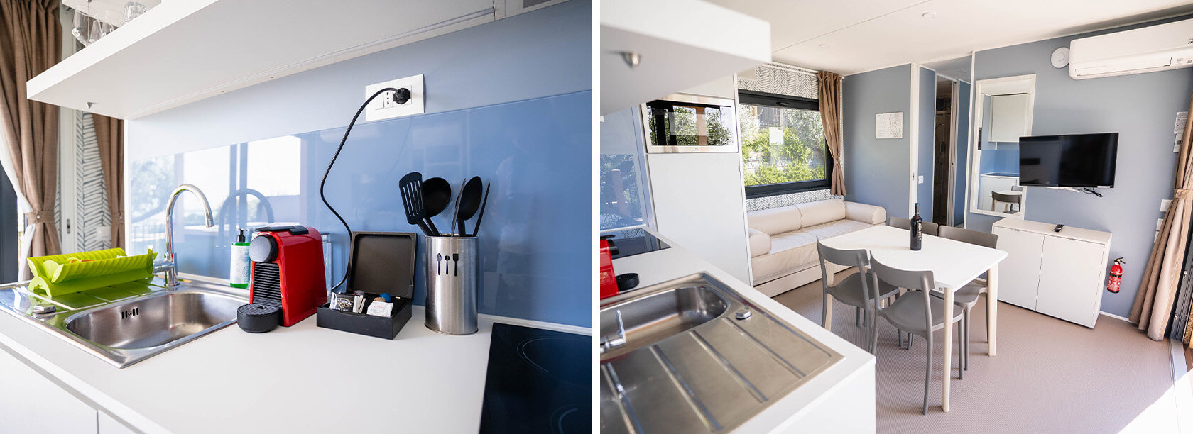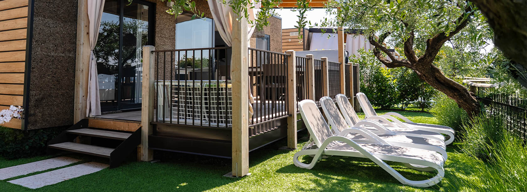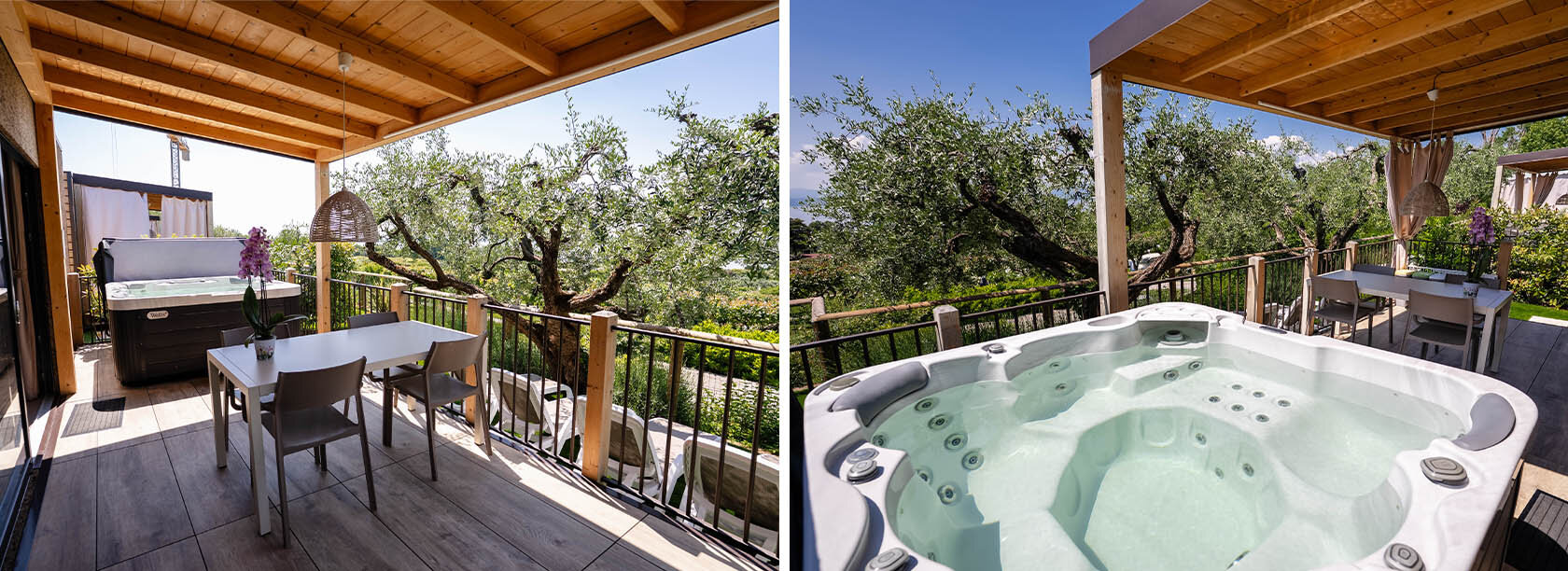 Den ideelle mobilehome til gæster der ønsker en afslappende ferie. En løsning, der giver dig mulighed for at holde ferie med maksimal komfort. Det udendørs område, omgivet af olivenlundene i Borgo Olivo, har en privat jacuzzi, hvor du kan slappe af og nyde udsigten over Gardasøen. Interiøret er varmt og indbydende. Brugen af bløde farver gør det afslappende i tråd med omgivelserne. Kan rumme op til 5 personer. Olivi Hydro Extra mobilehome, kan ligesom de andre ferieboliger i Borgo Olivi skabe afhængighed. En ferie du ikke har lyst til at tage hjem fra.